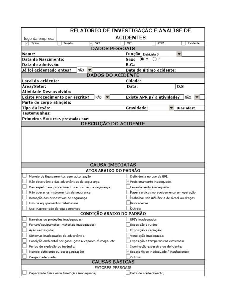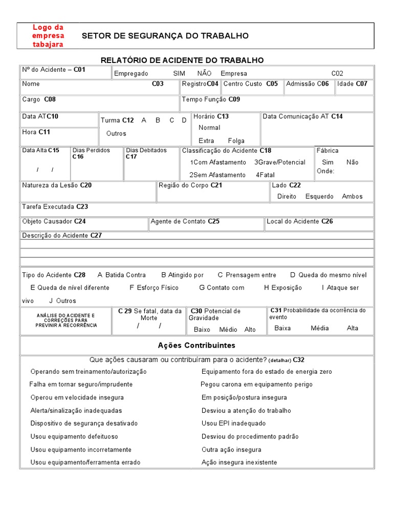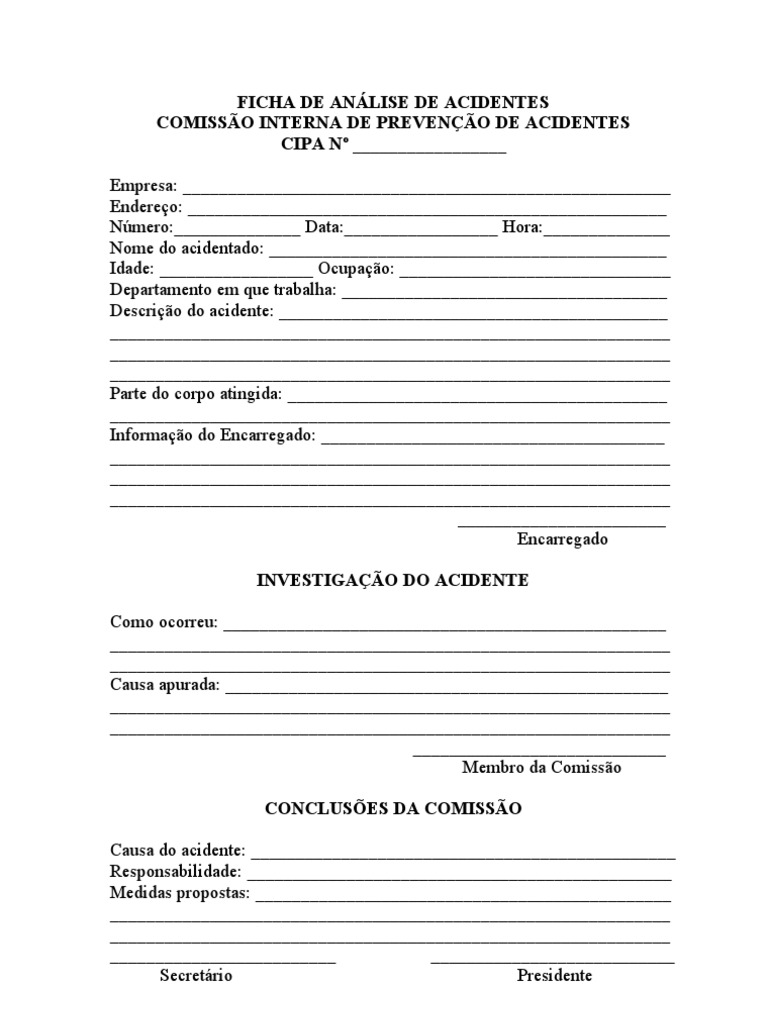 Aqui Ficha de Investigação de Acidente de Trabalho | Acidentes | Acidentes e mais