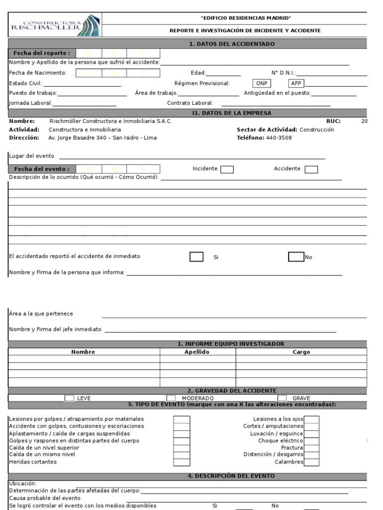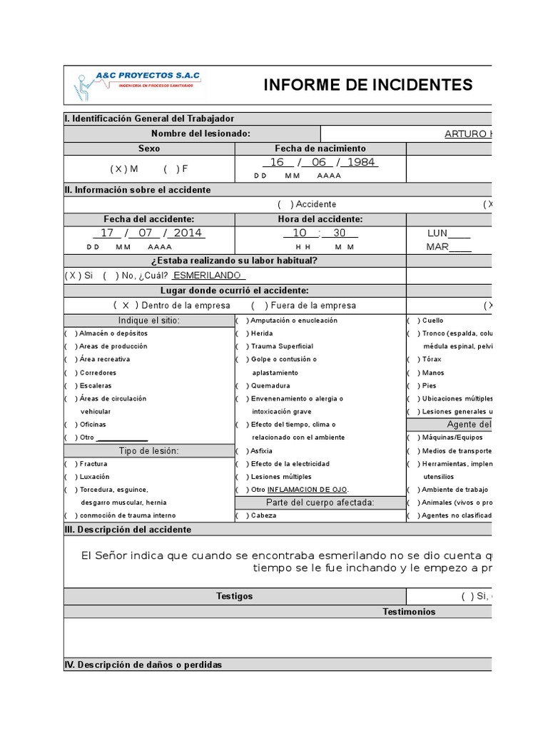 Sobre Formato Reporte de Accidentes-Incidentes | PDF | Lesión | Bienestar popular