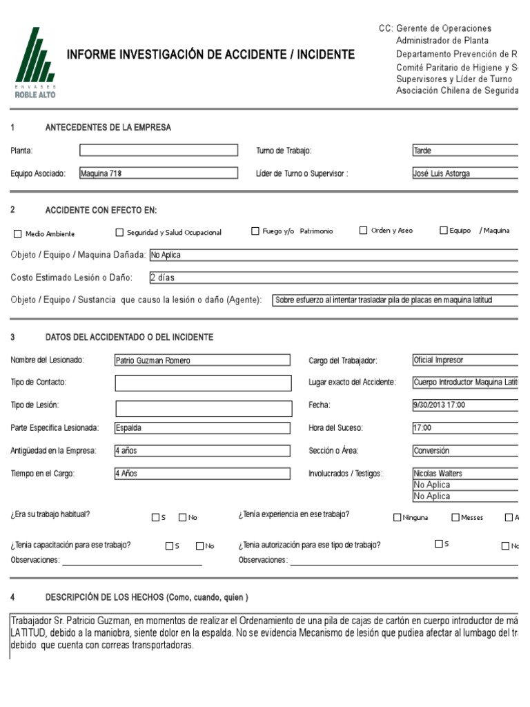 Assista Formato de Investigación de Accidentes | PDF | Bienestar | Medicina Novo