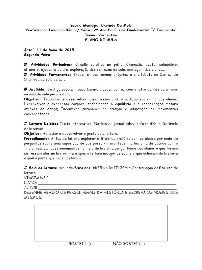 Mais sobre Plano De Aula Pronto Para Alfabetização Leitura E Escrita atualizado para você