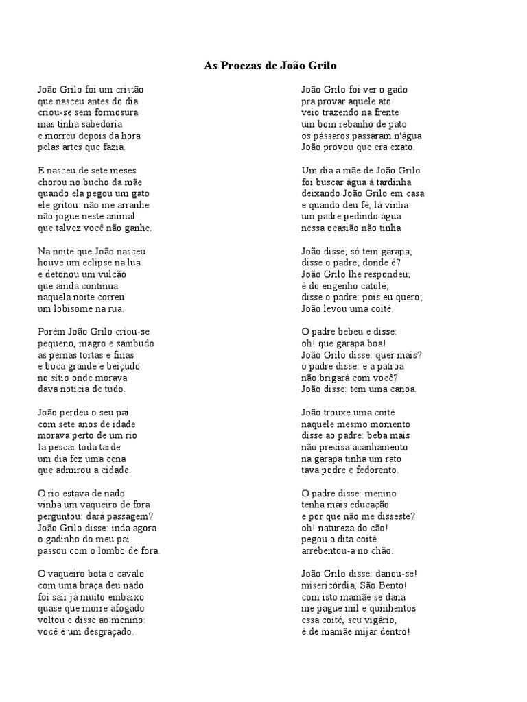 WebCom o livro O Pequeno Príncipe em Cordel foi finalista do Prêmio Jabuti em 2016. 10. Amor de uma estudante ou O poder da inteligência, de João Martins de Athayde. A beleza e o. WebO ESTUDO TEM COMO OBJETIVO COMPARAR AS MALANDRAGENS E ESPERTEZAS DE JOÃO GRILO E CANCÃO DE FOGO, NAS OBRAS, AS PROEZAS DE JOÃO.
