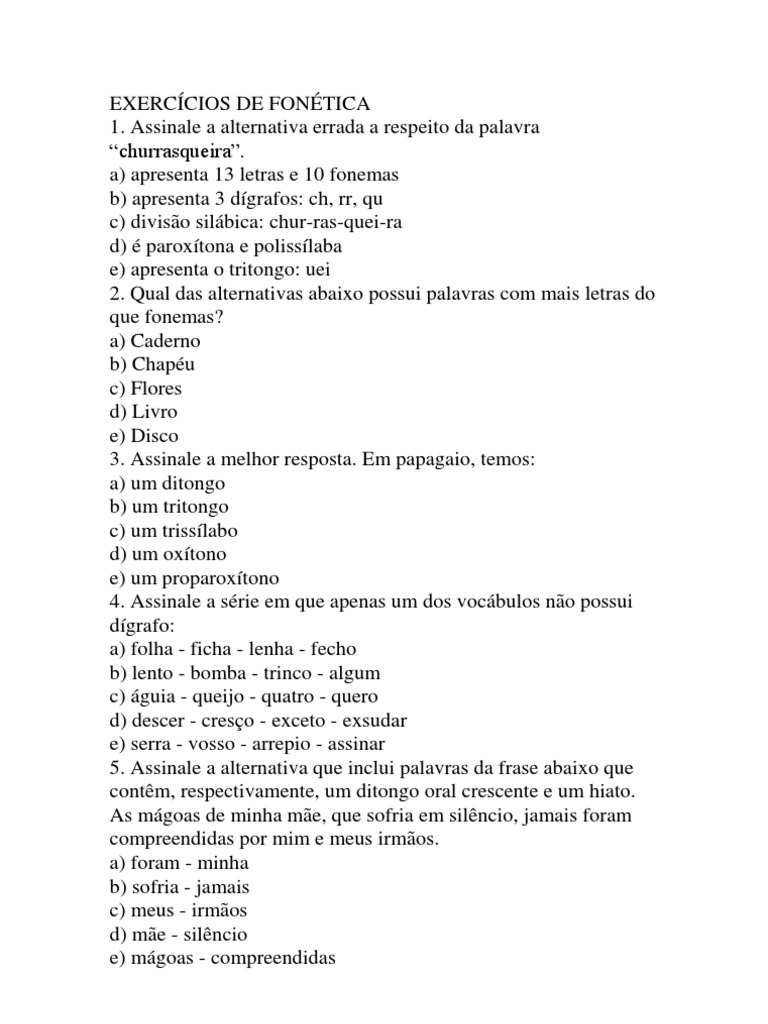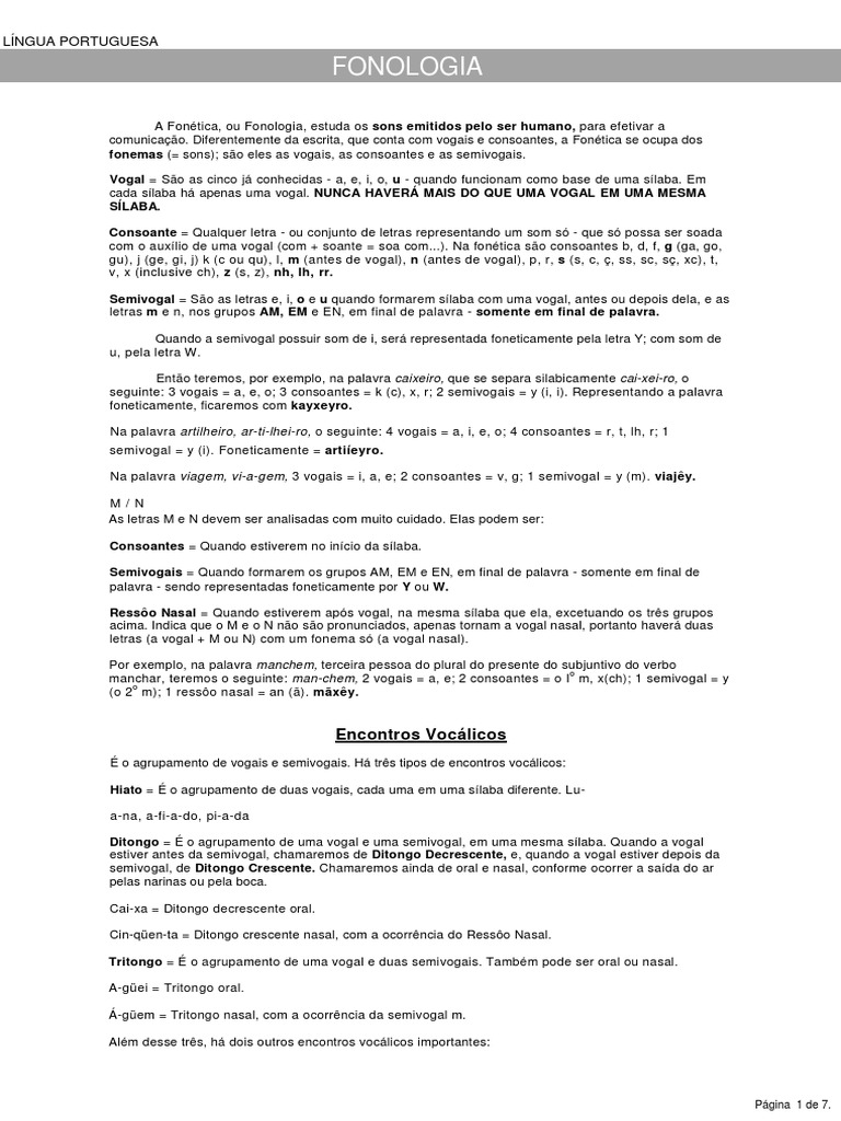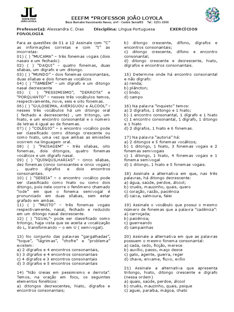 Comentários Fonética - Exercícios | Fonema | Língua Portuguesa Último