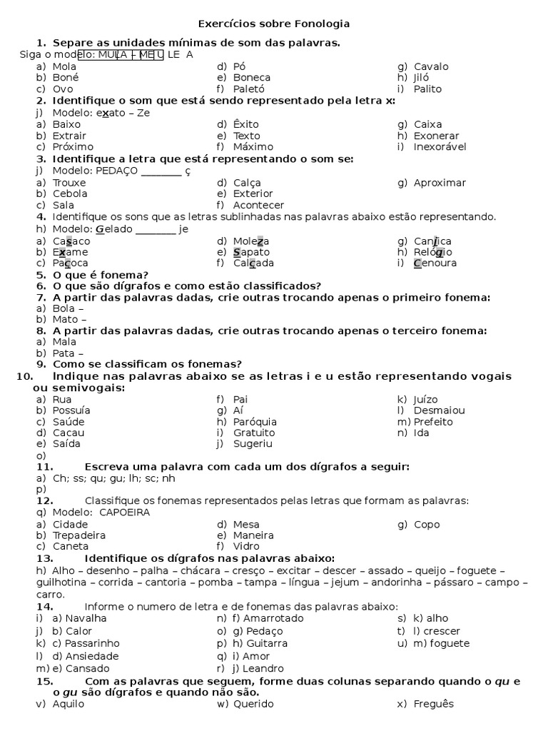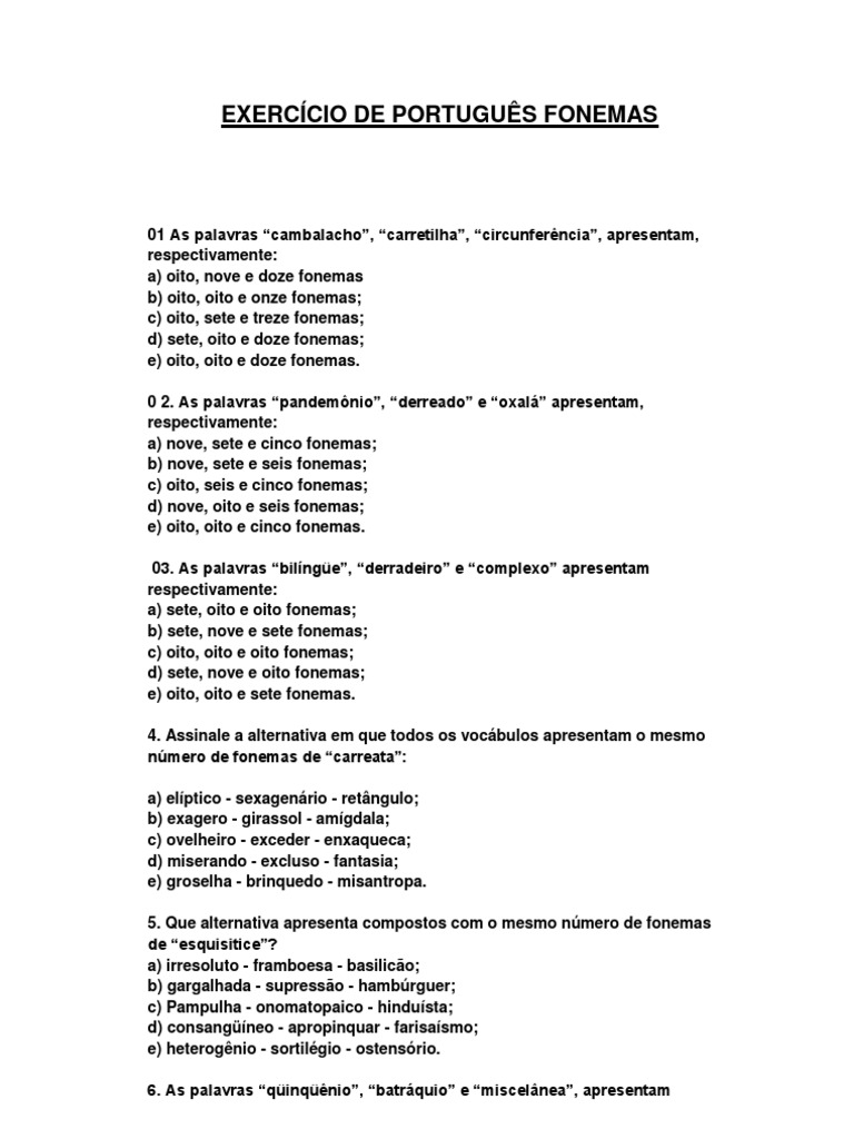 Visualizar Exercícios Sobre Fonologia | Fonema | Comunicação Oral tendência