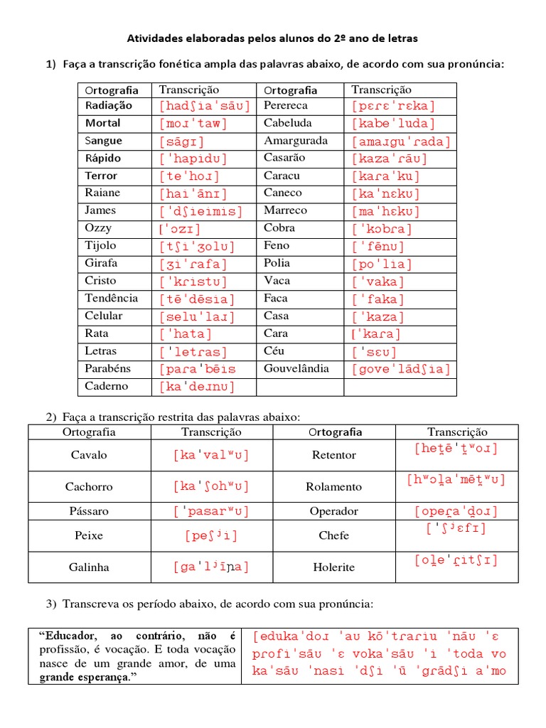 Notícias CORREÇÃO DE EXERCÍCIOS - FONÉTICA E FONOLOGIA viral