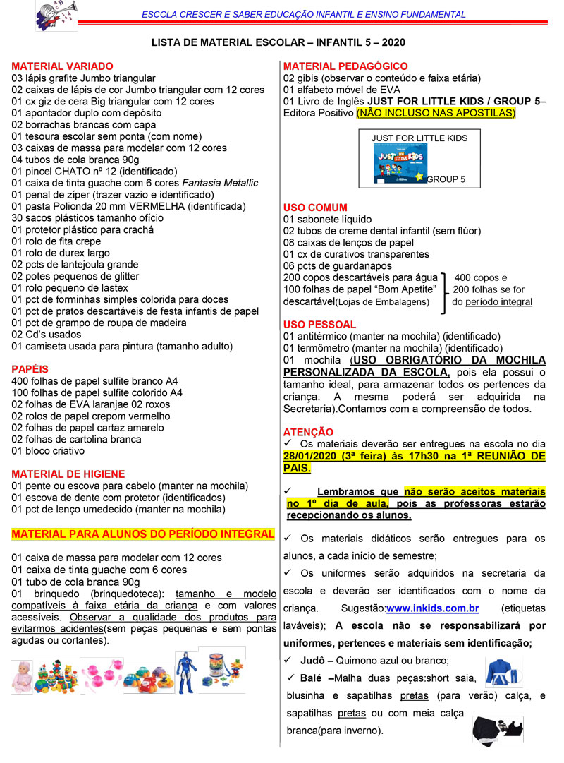 Sobre Lista de Materiais | Crescer e Saber - Escola de educação infantil em se tornando viral