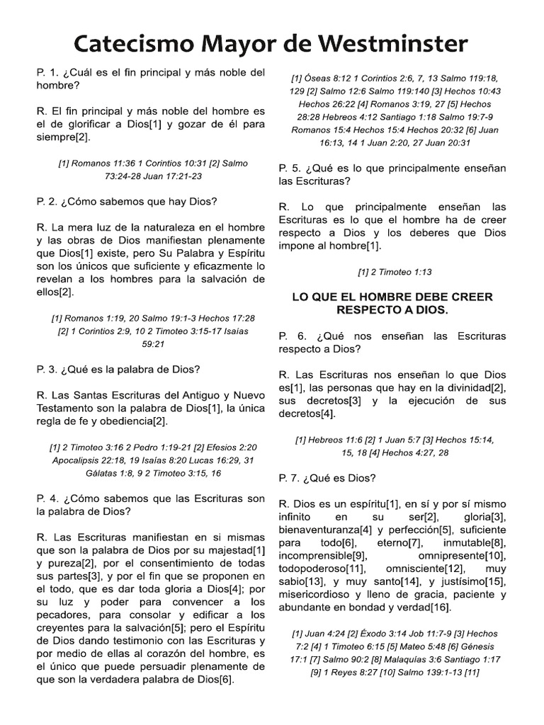 WebLos Catecismos de Westminster. Los catecismos de Westminster son dos: Un Catecismo Mayor para ministros, para ser explicado desde el púlpito, según la.