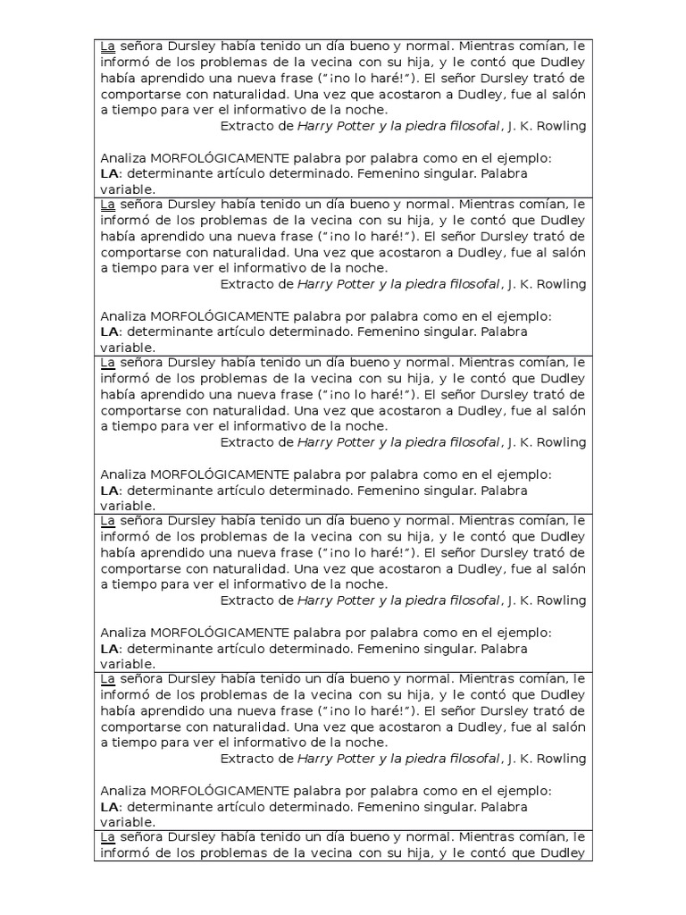 Tópicos Análisis morfológico y sintáctico de textos.docx | Harry Potter | J. K Novo
